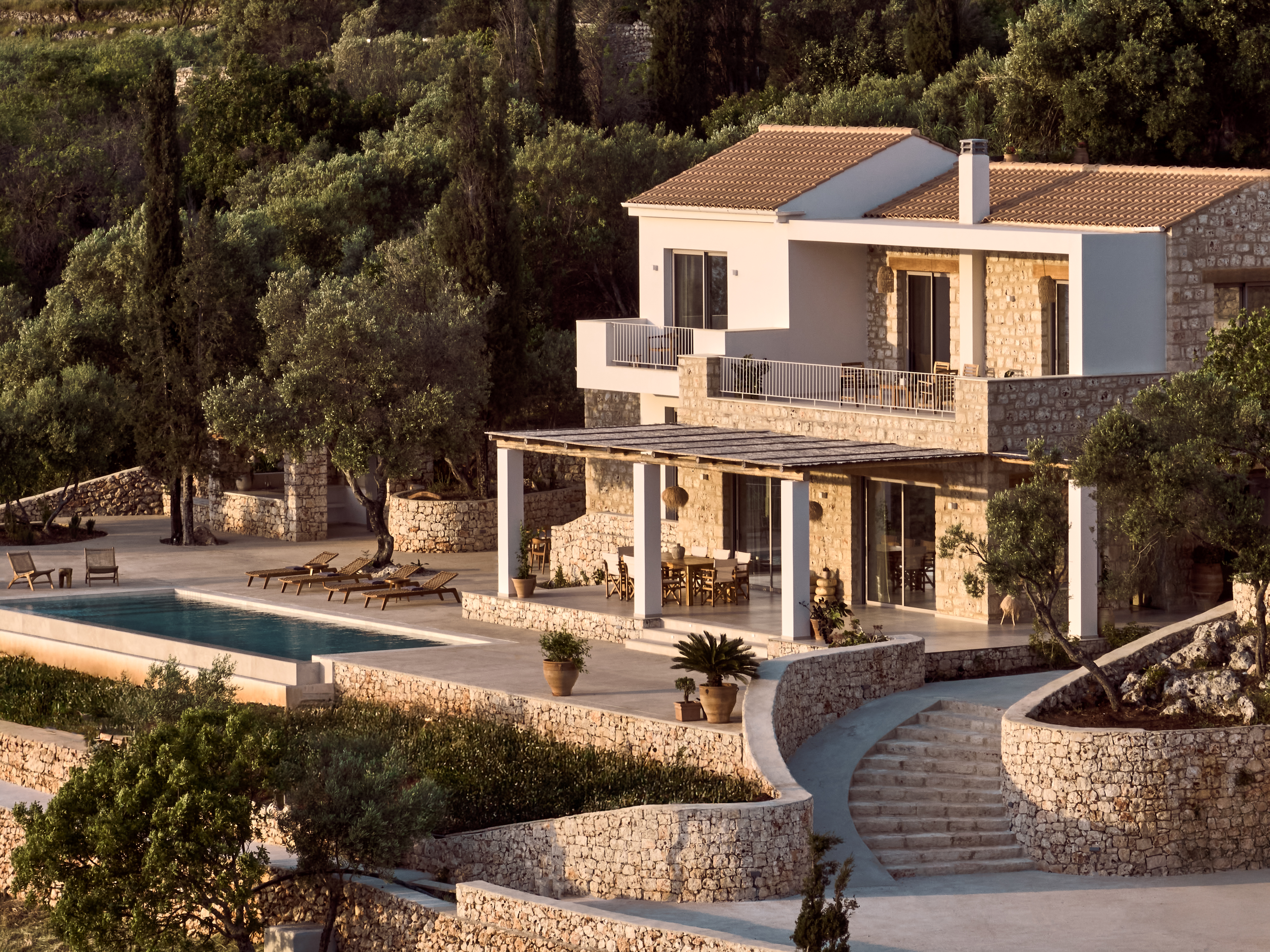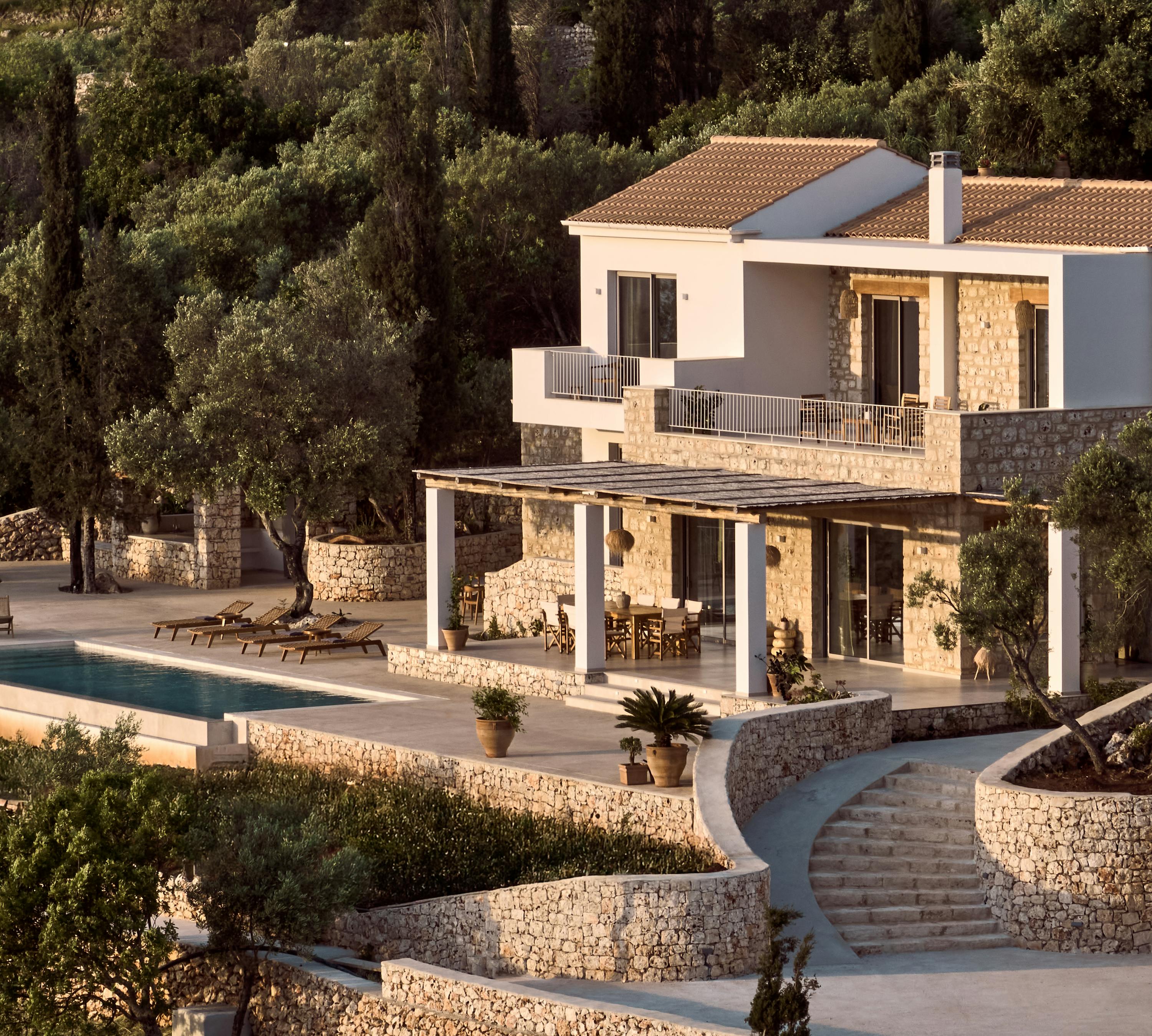 Gaia is a modern escape just a short stroll from Peligoni; a beautifully designed retreat for families or groups of friends. Overlooking pretty hillside cottages and the vast blue expanse of the Ionian Sea, it has a private pool and outdoor kitchen, setting you up perfectly for a relaxing week under the sun.
