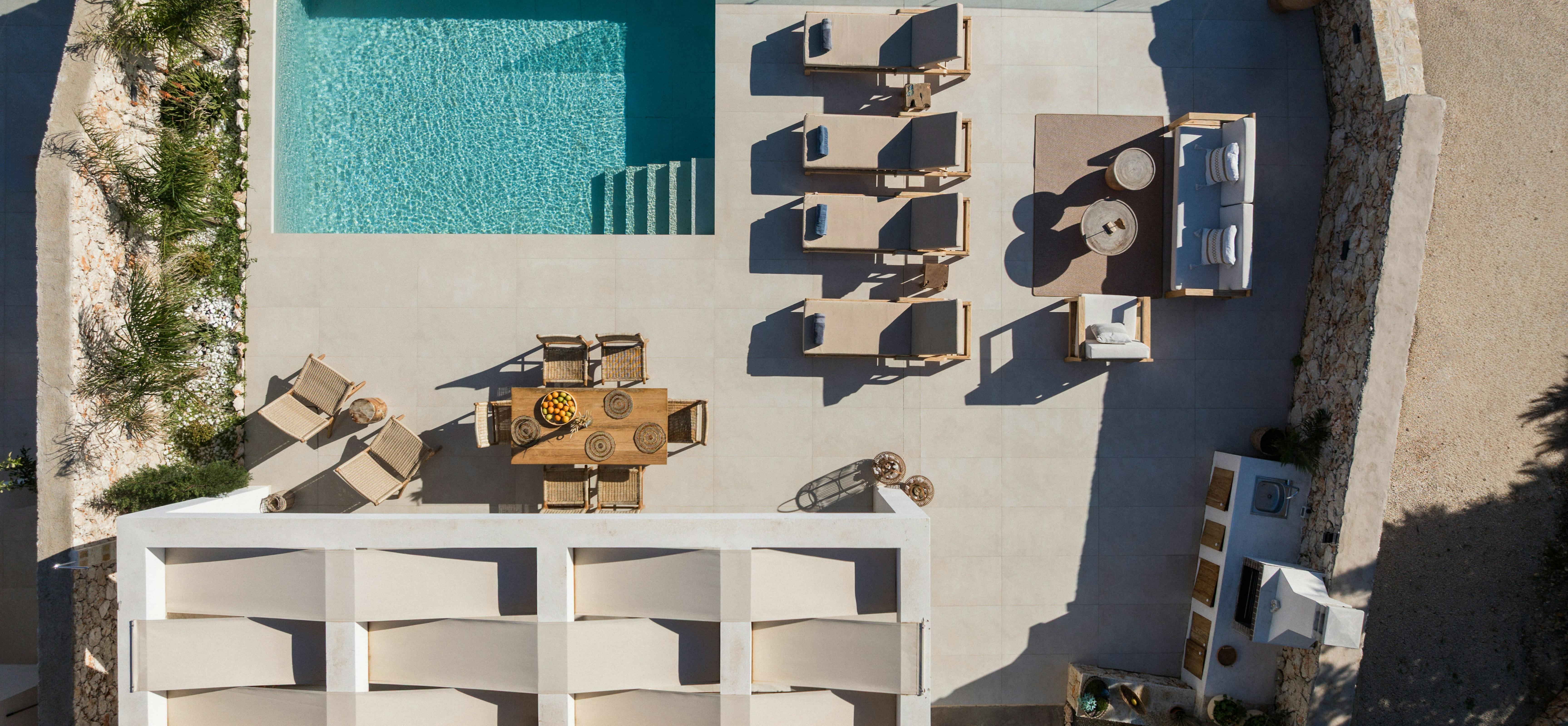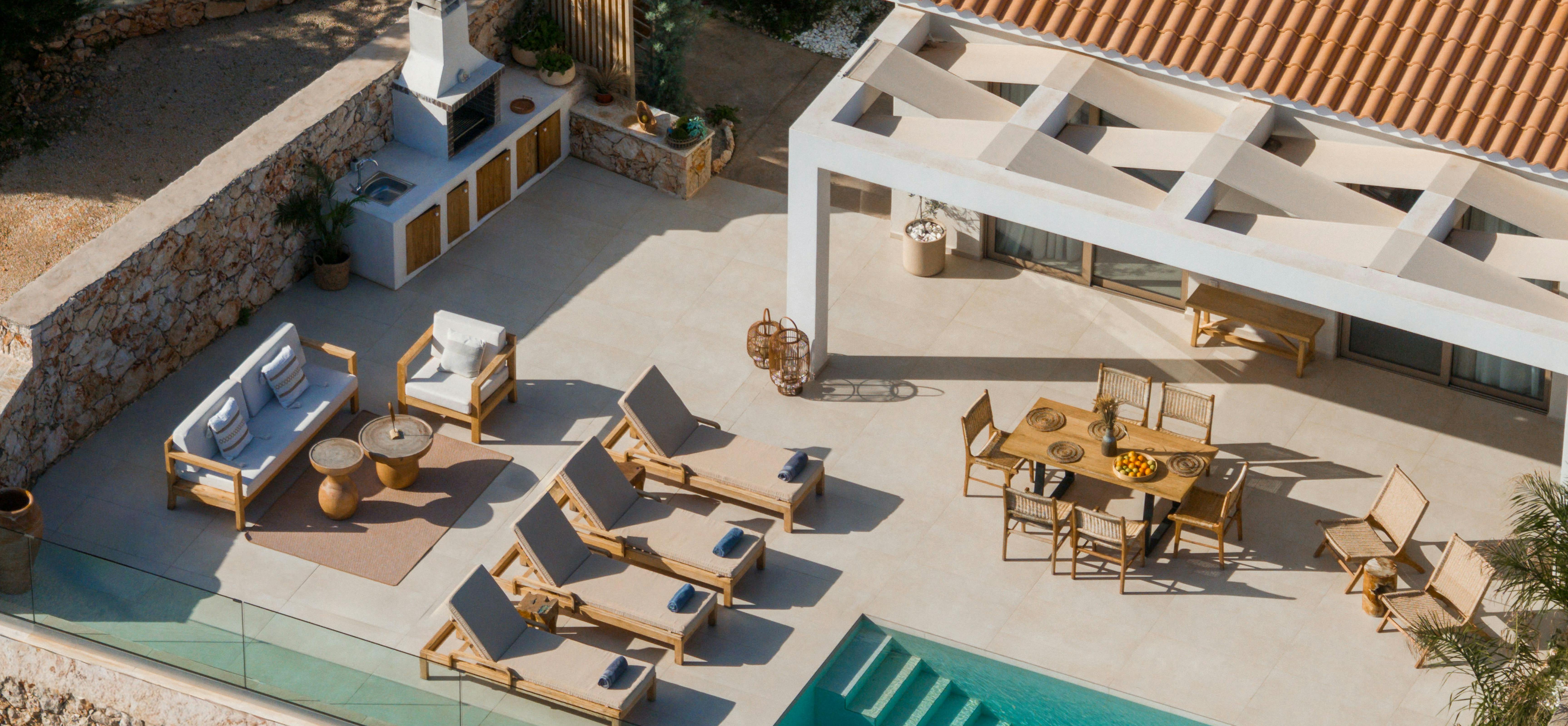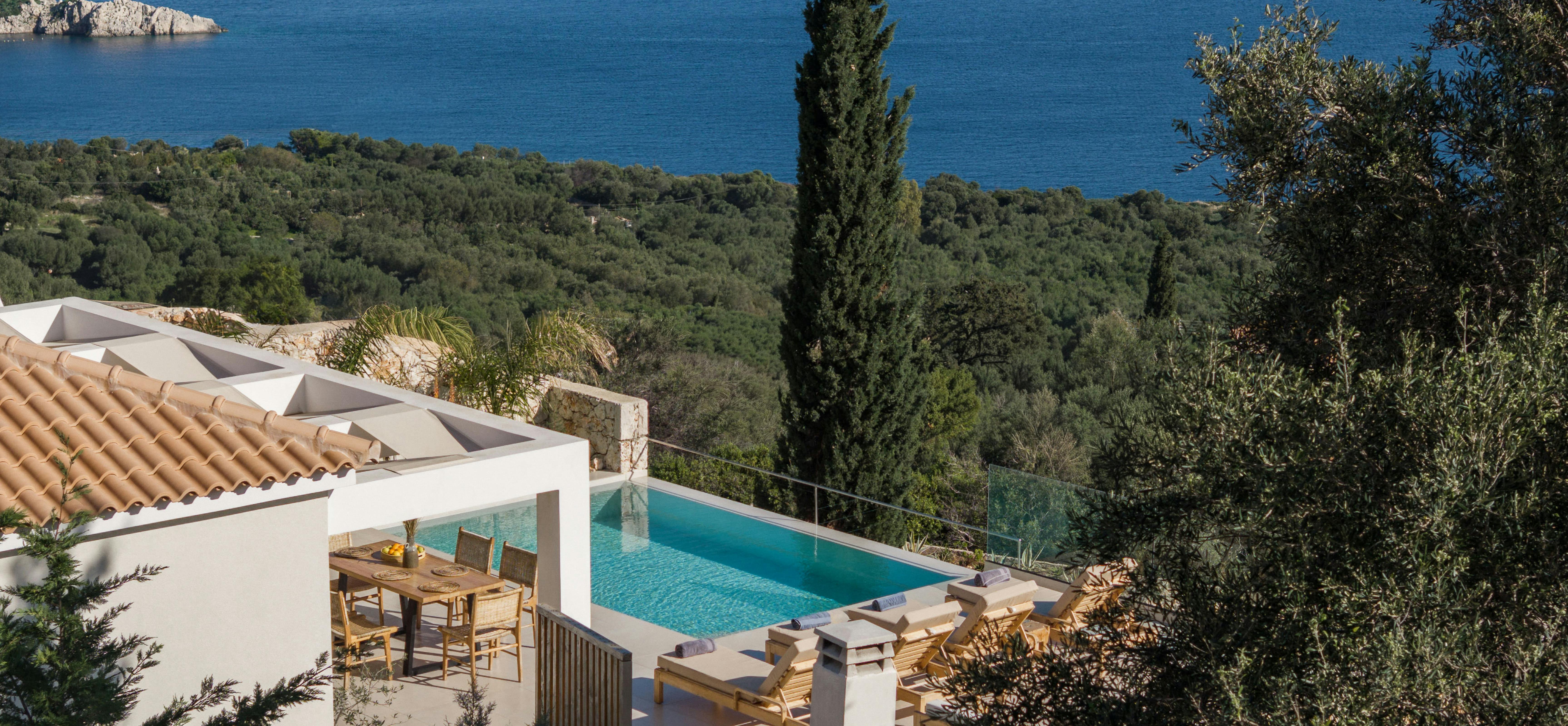 Stylish, modern and tranquil, Petra South is perched above the sea, surrounded by cypress and olive trees and sweeping sea views. The sister property, Petra North, sits next door, and the two can be taken together for larger groups or for those wanting more space to themselves.